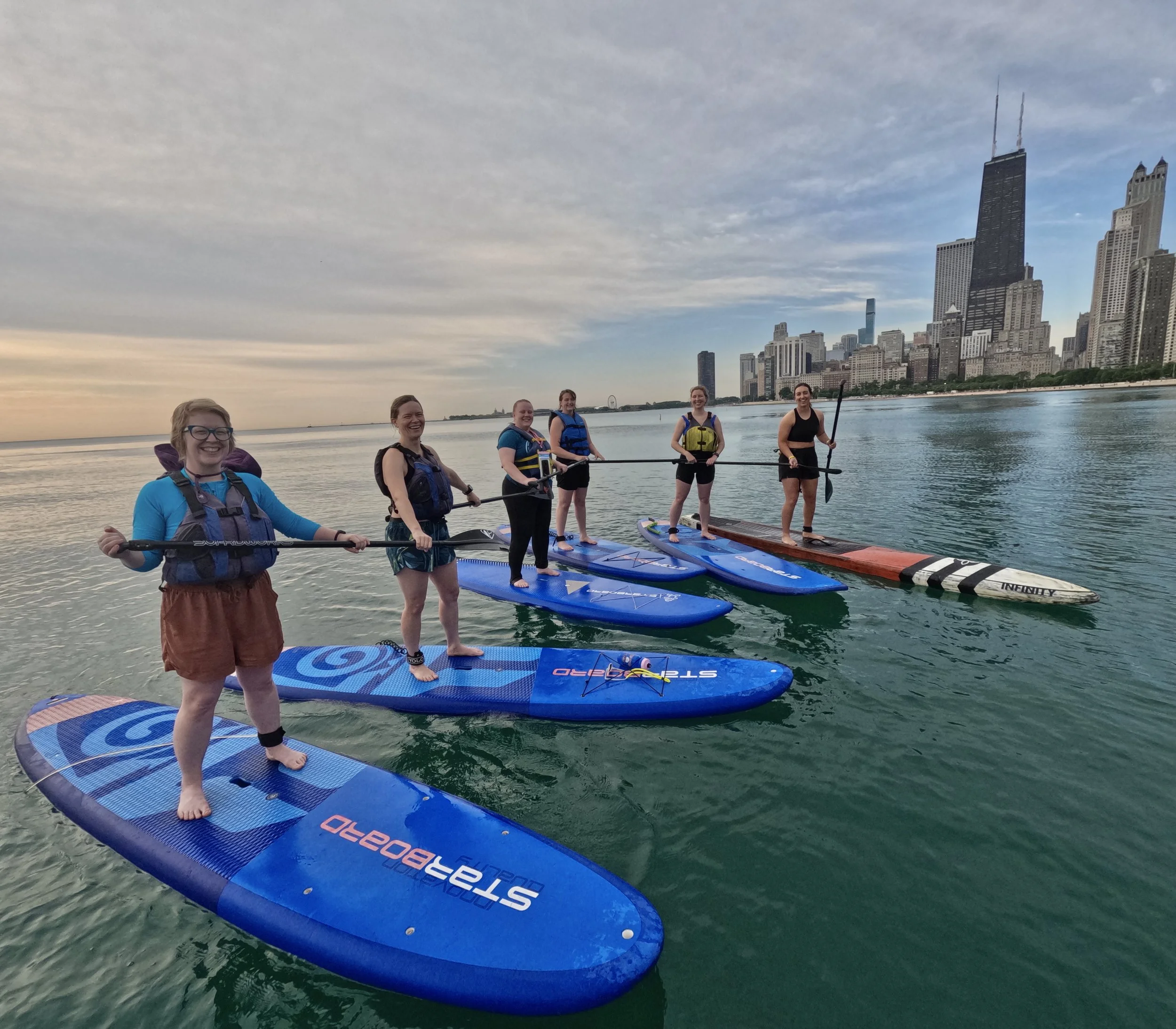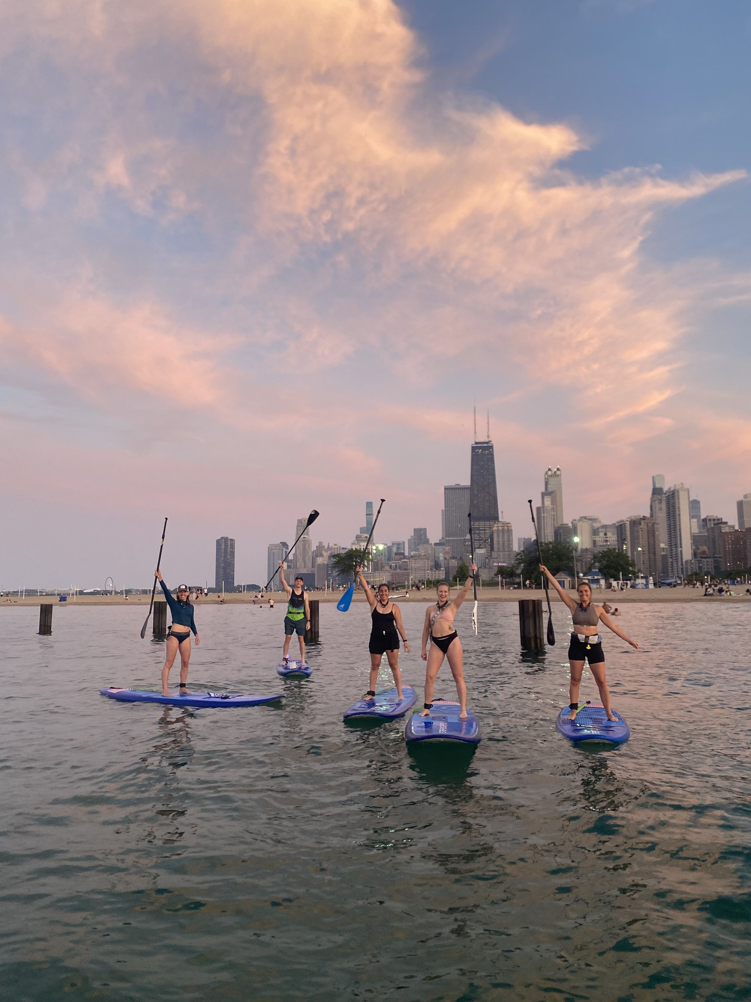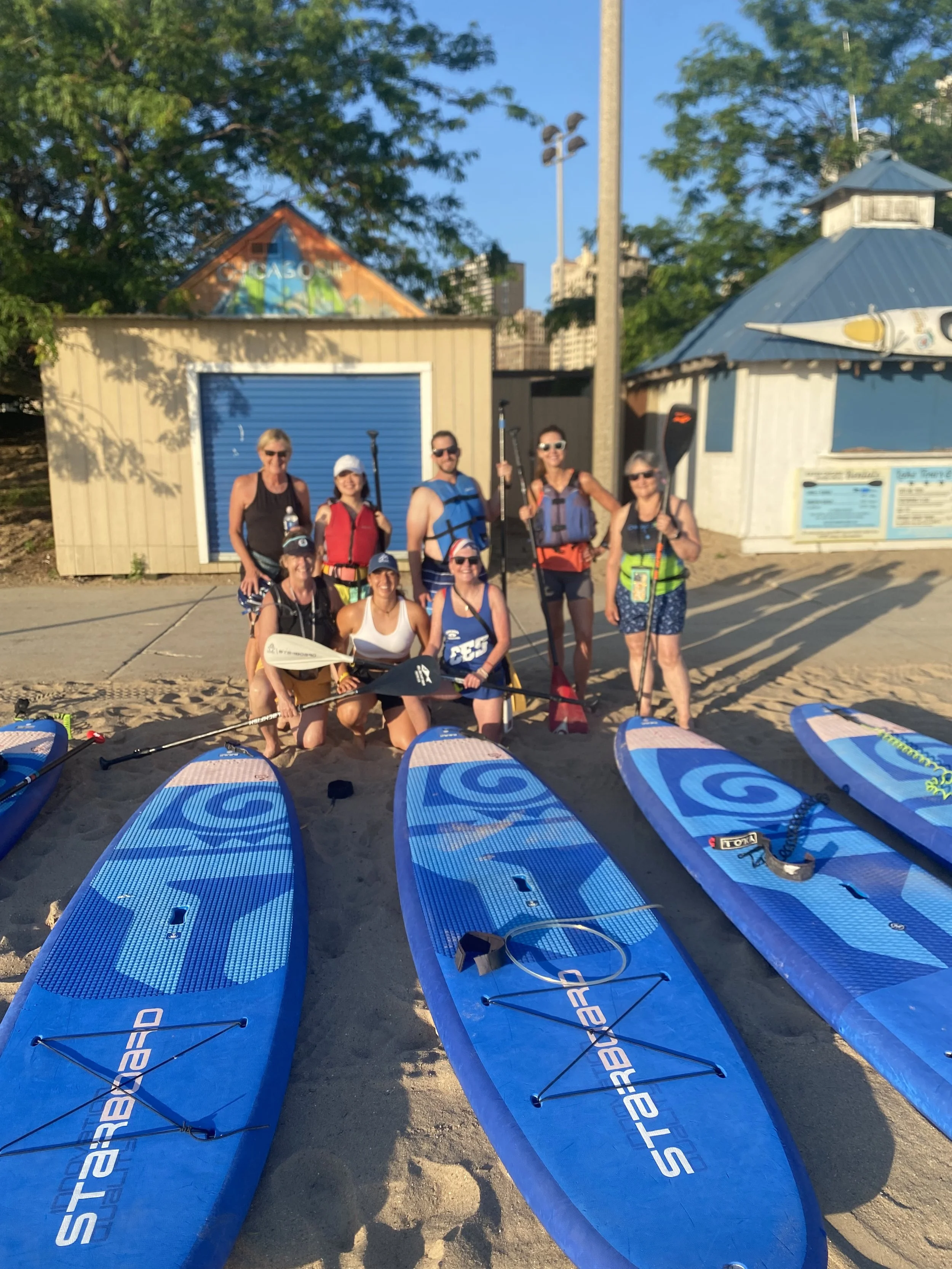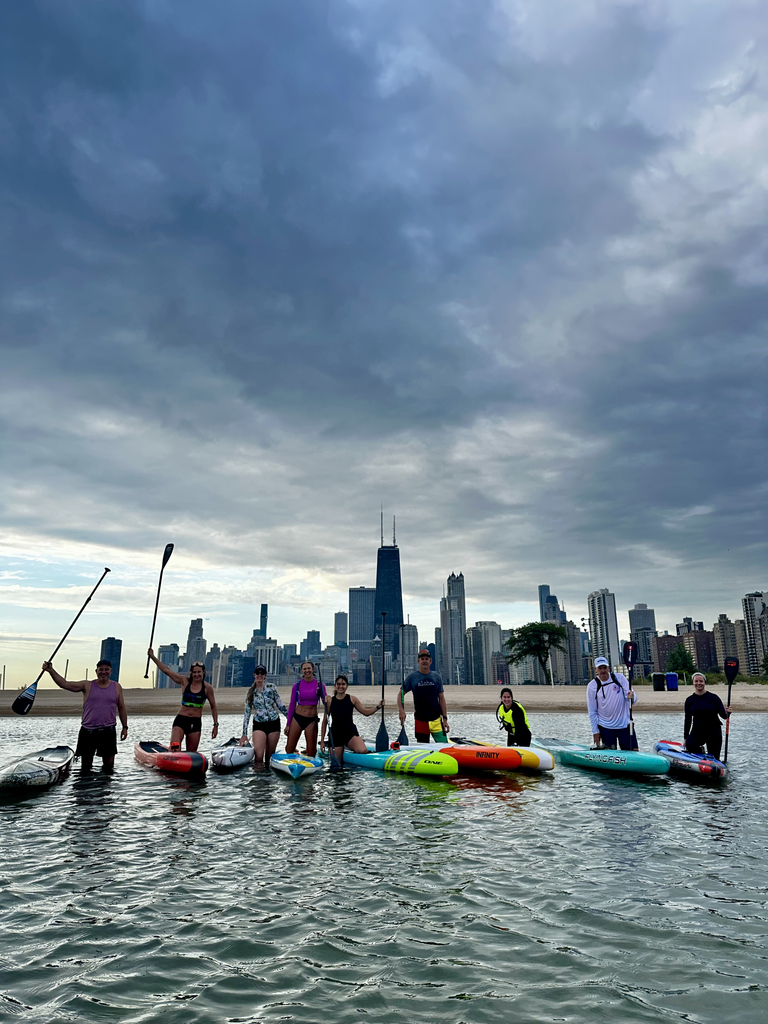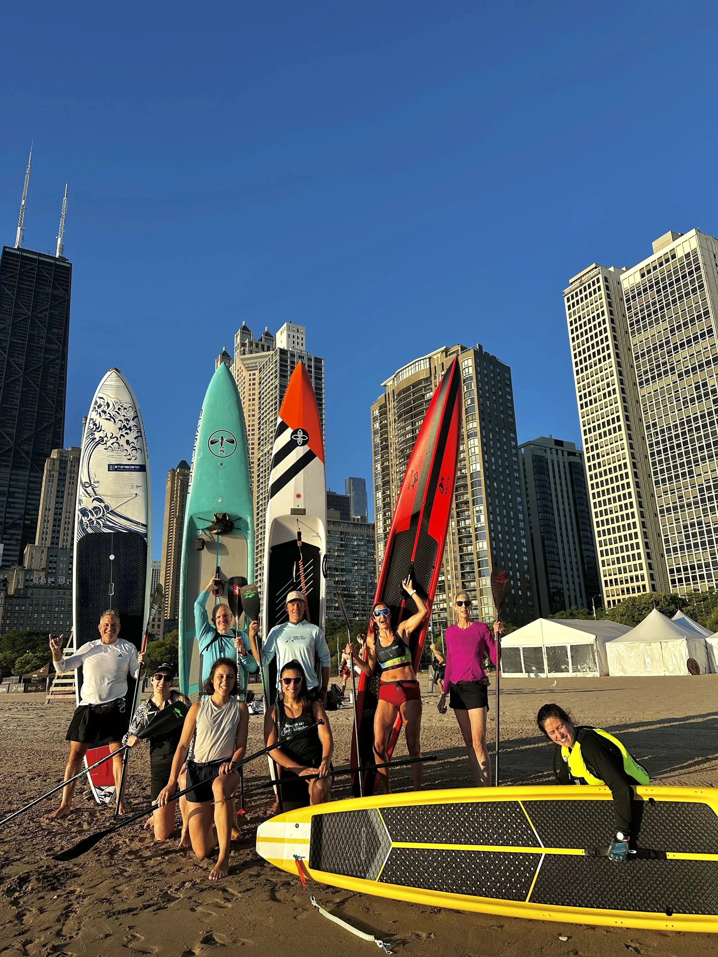 Today, Chicago SUP operates from two prime spots along the lakefront - North Avenue Beach and Diversey Harbor - offering the perfect mix of city views and open water.